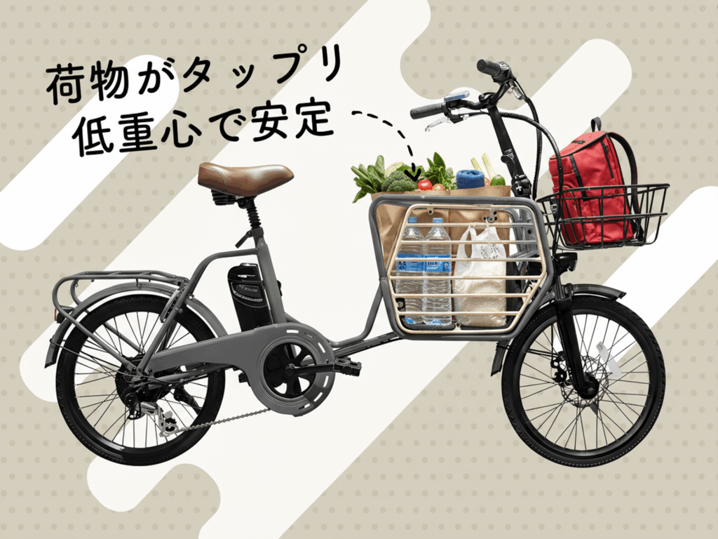 さらに、電動アシスト機能が安定した走行を力強くバックアップ、上り坂でも荷物の重さを気にすることなくスムーズに目的地へ到着できます。